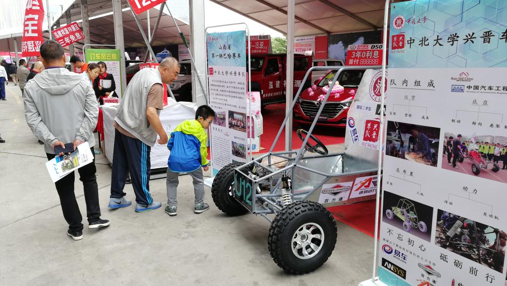 5月20日,我校兴晋车队携山西省首辆巴哈赛车亮相山西太原煤炭交易中心,参加太原国际车展。