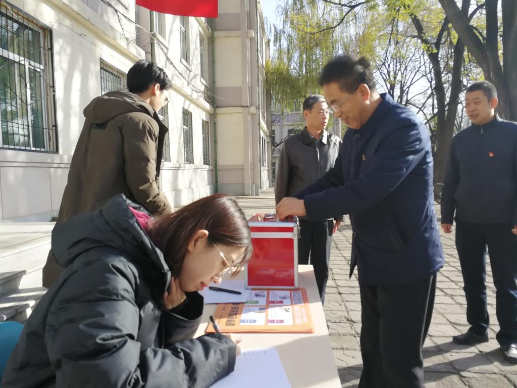党委发动各党支部在诚学楼前举办以“不忘初心献爱心,牢记使命暖寒冬”为主题的募捐活动,号召全院师生为山西省忻州市五寨县后五王城村的贫困家庭捐衣捐物、奉献爱心。