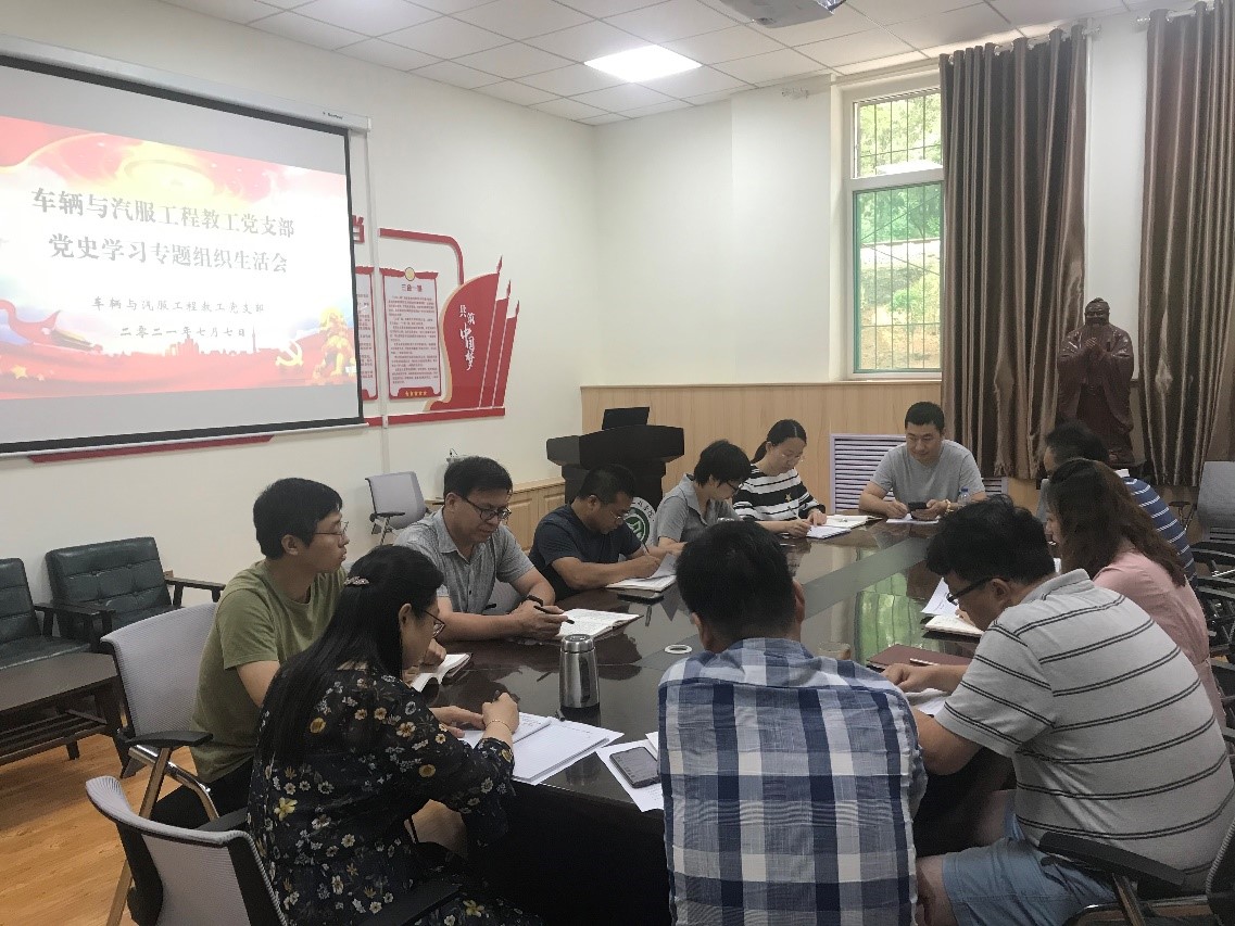 车辆与汽服工程教工党支部于7月7日上午9:00在诚学楼118会议室召开党史学习教育专题组织生活会。会议由支部书记韩文艳同志主持,全体教工党员参加。