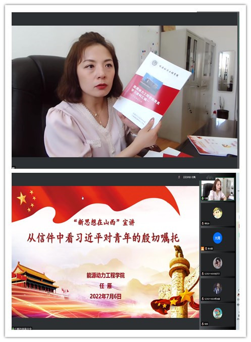 党委开展“新思想在山西”宣讲活动。本场宣讲由院党委副书记任雁同志担任主讲嘉宾,为全体学生党员带来主题为《从信件中看习近平对青年的殷切嘱托》的党课。各学生党支部书记和全体学生党员80余人通过腾讯会议在线参加了本次学习。