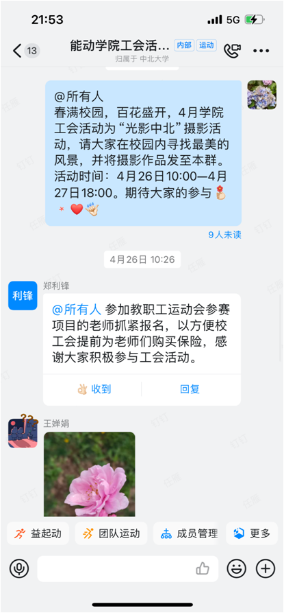 “人间最美四月天”,老师们纷纷走到户外,以独特的视角表达了对春天的热爱和对美的追求,展现了春天的生机与活力。桃花朵朵灼芳华,海棠花开红艳艳,梨花洁白缀枝头,杨柳拂面风不寒,老师们用自己的镜头,记录春天的美景。为了更好的展示大家的摄影成果,老师们将摄影作品发送到工会钉钉群,一起在云端共赏美景。