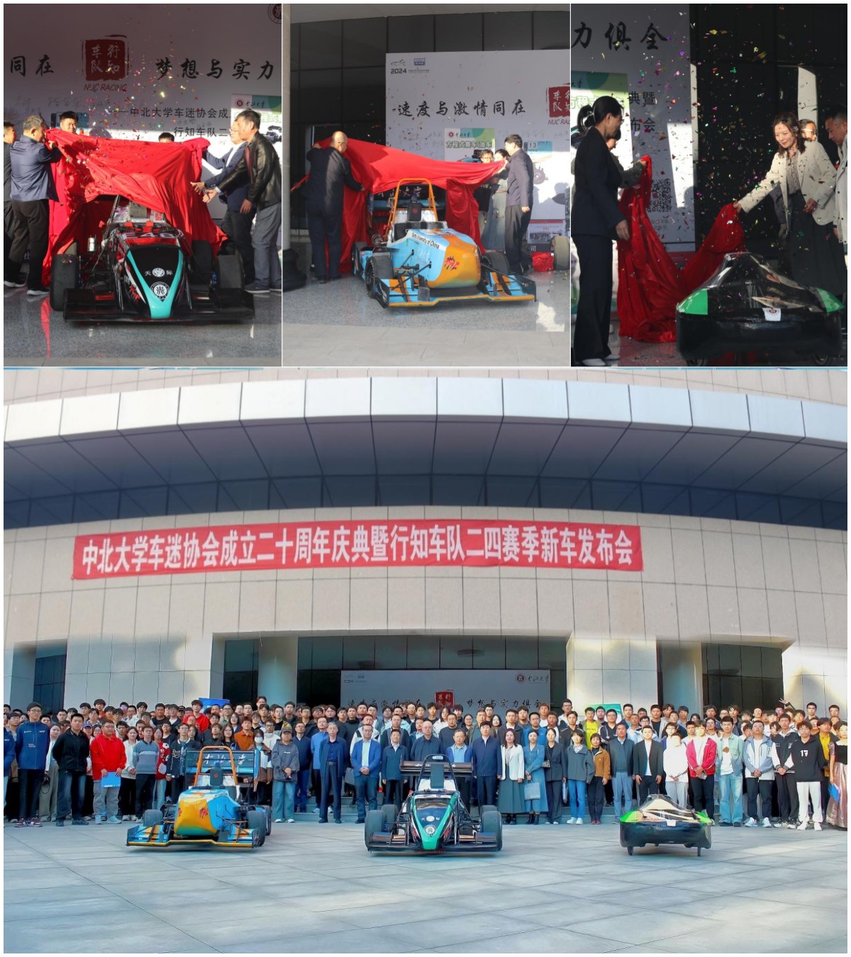 本次庆典的重头戏便是行知车队24赛季新车的亮相。随着幕布缓缓揭开,三辆赛车依次亮相,引得现场观众阵阵惊叹。新车不仅展示了行知车队在技术创新和工艺水平上的巨大进步,也预示着车队在即将到来的中国大学生方程式汽车大赛、中国大学生电动方程式汽车大赛、壳牌汽车环保马拉松中将继续书写辉煌篇章。