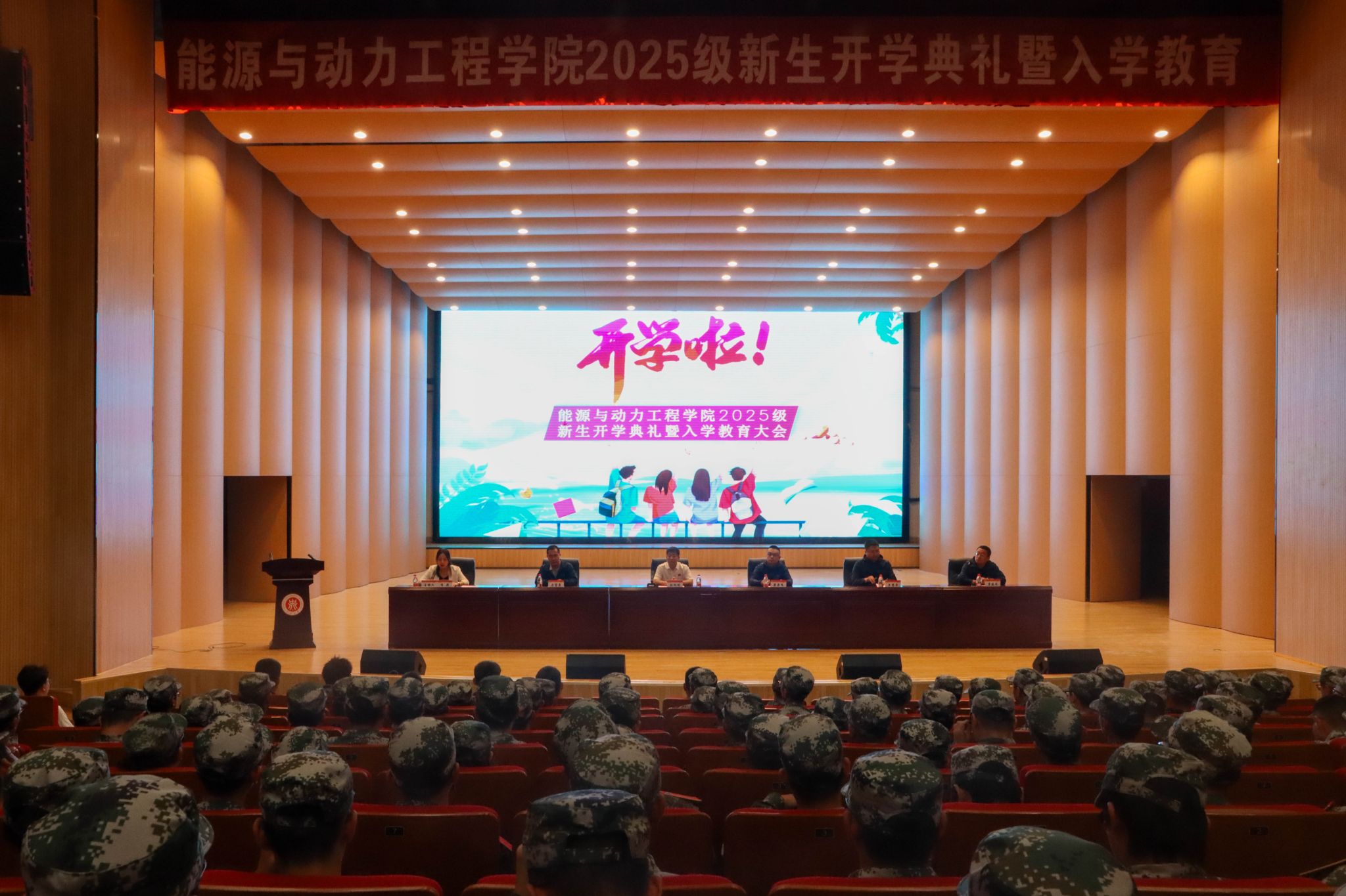 在科艺苑隆重举行2025级新生开学典礼暨入学教育大会。院党委书记胡向明、副院长胡胜亮、院长助理马富康、梁君飞、王慧奇、常建龙出席大会。全体辅导员、新生班主任及2025级全体新生参加大会。会议由院党委副书记兼副院长任雁主持。