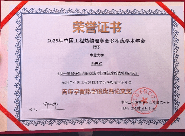 光热技术团队孙志欣硕士的学术论文《基于离散多相流的宽域飞行器结冰数值模拟研究》,凭借扎实的理论基础、创新的研究方法及重要的应用价值,在众多参评成果中脱颖而出,荣获2025年中国工程热物理学会多相流学术年会“青年学者陈学俊优秀论文奖”。这一荣誉不仅是对孙志欣硕士个人学术能力的高度认可,更是韩国色情