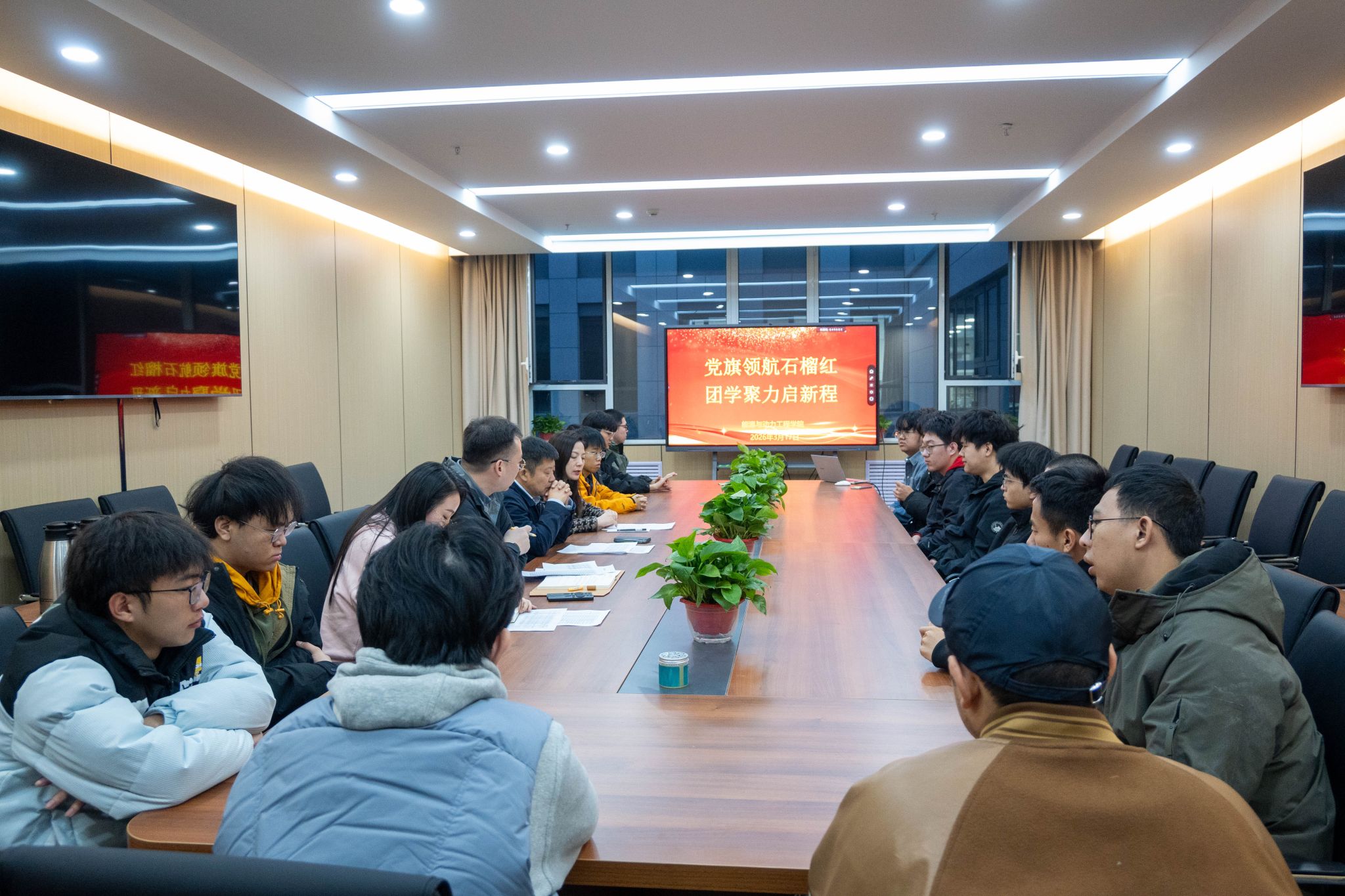 于2026年3月17日在能源大楼A220会议室召开“党旗领航石榴红,团学聚力启新程”2025级少数民族学生座谈会。院党委书记胡向明、院党委副书记兼副院长任雁、院团委书记屈增、辅导员代表及2025级少数民族学生齐聚一堂,共话民族情谊。
