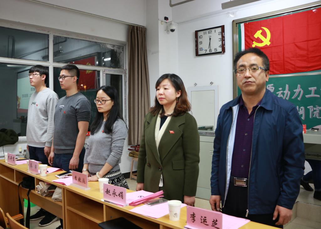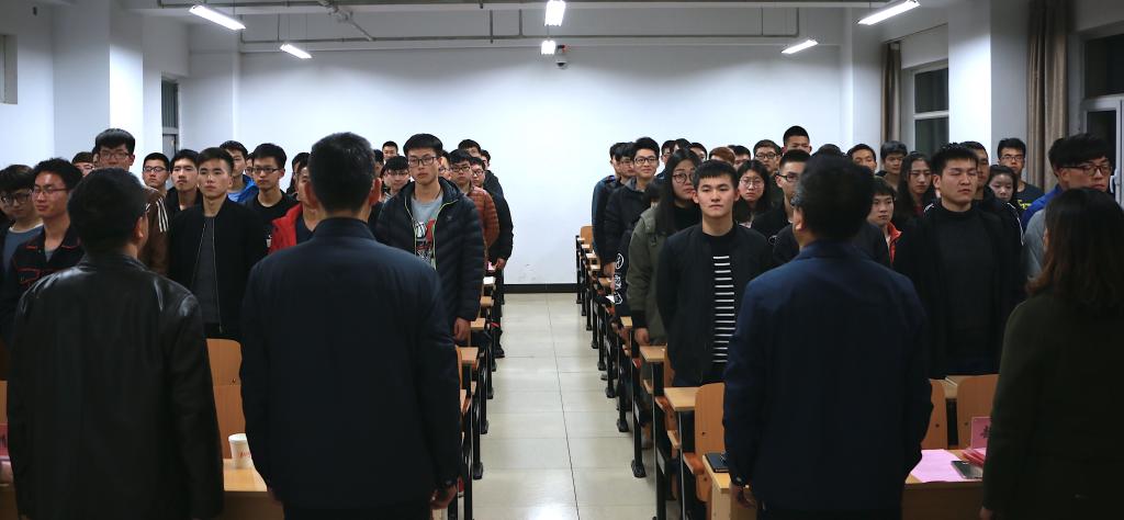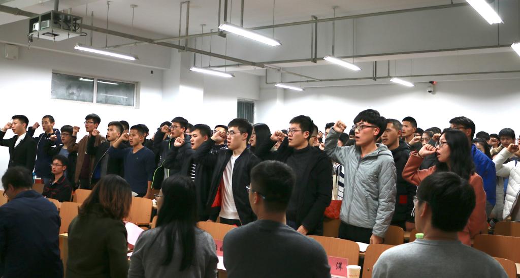 伴随着肃穆的国际歌大会拉开帷幕,首先赵永娟老师对第一期党课做具体安排,介绍培训形式,并强调纪律要求。学员代表王翰轩表示了对党组织靠拢的坚定和做好了接受考验和服务同学的准备,学员张江带领全体学员承诺,认真学习,接受检验。随后,院长刘汉涛老师做动员讲话,他赞扬了学员们用行动表明向党靠拢的态度和决心,要求入党积极分子起先锋表率作用。最后,院党委书记李运芝老师对本次开班典礼做总结,他要求学员在今后以身作则,用言行影响广大同学,真正起到先锋模范作用,他还强调学员们要有奉献精神和责任感,在工作中真正发挥自己的作用。