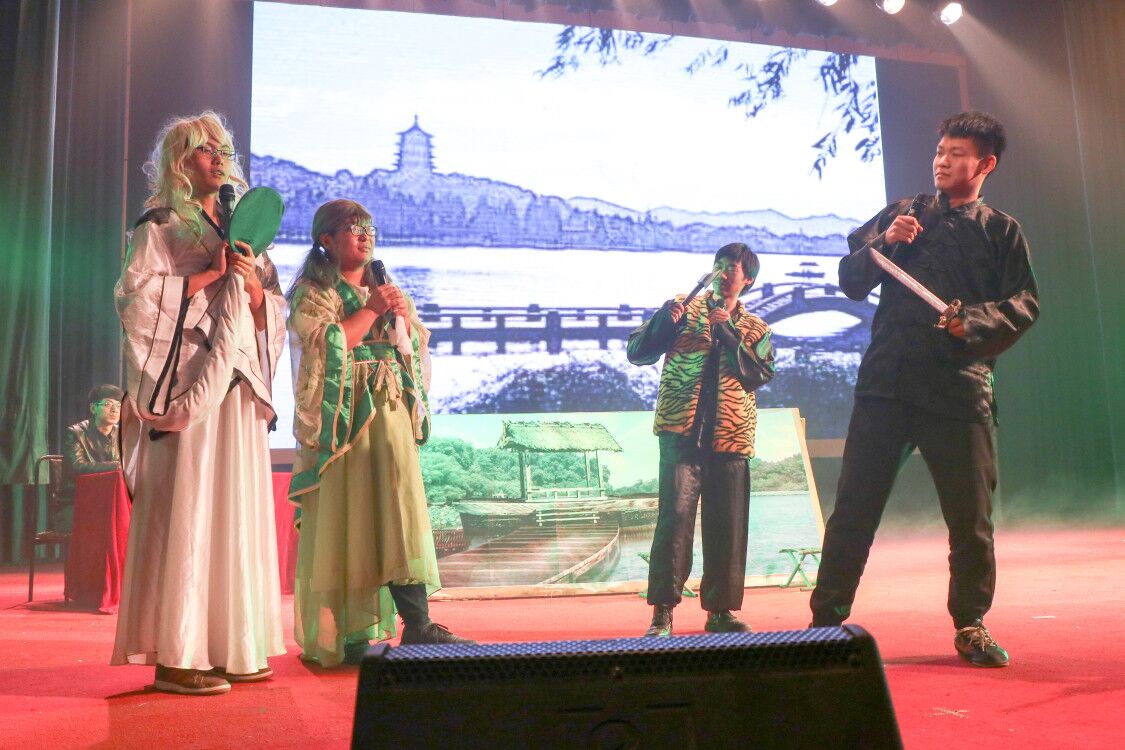 院徽举行揭牌仪式,并为设计院徽的三名同学颁发证书。随后晚会正式开始。