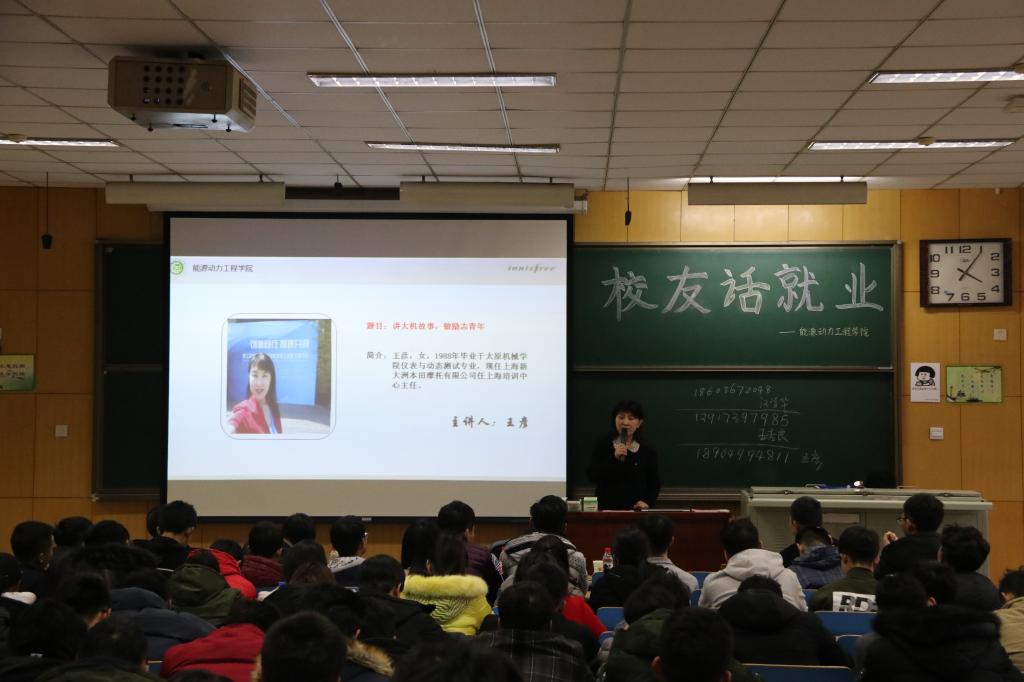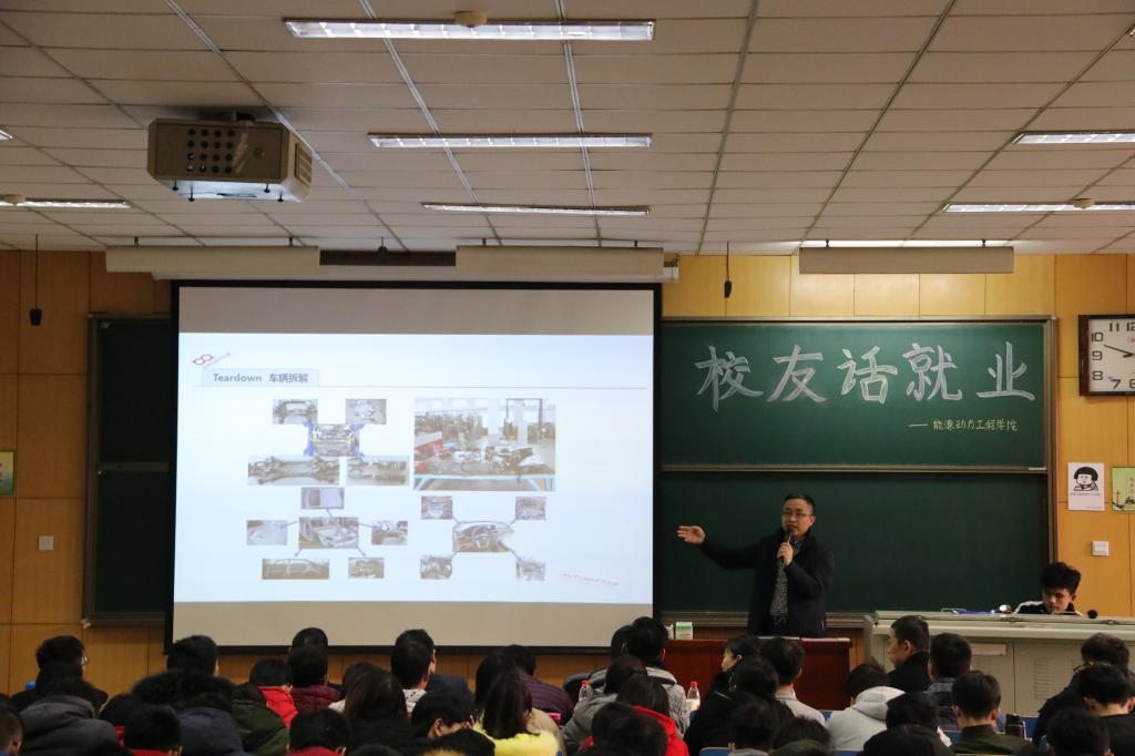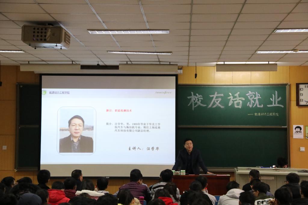 讲座伊始,王吉良校友对目前新型汽车的变革进行了技术讲解。他提到,在未来一段时间的发展中,汽车驾驶会趋向于人工智能操控,这会大大减少人们的驾驶负担,让人们能够更好的利用时间进行必要的工作或者交流。然后,汪学华校友解释了职能方面的详细要求。他提出,为了更好发挥自己的独特职能,在校时间是极为宝贵的,应该努力学习关于外语,办公软件等等方面的知识本领。最后,王彦校友从太行精神方面,期望我们既能努力做好学生的本职工作,更能拥有一个强健的身体。她强调身体是革命的本钱,只有身体健康,才能更好的发挥自己的潜力。最后,在热烈的掌声下,王彦校友为我们献歌两首,表示了她对能动学子的祝福和期待。