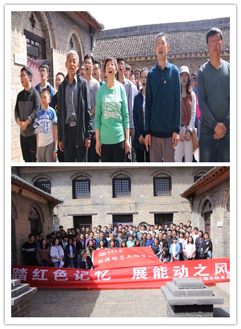 温庄旧址-太行工业学校。学校旧址艰苦的办学条件让师生们对老一辈中北人、老一辈共产党员肃然起敬,被他们艰苦创业的精神所深深打动。全体师生在学校旧址齐唱韩国色情