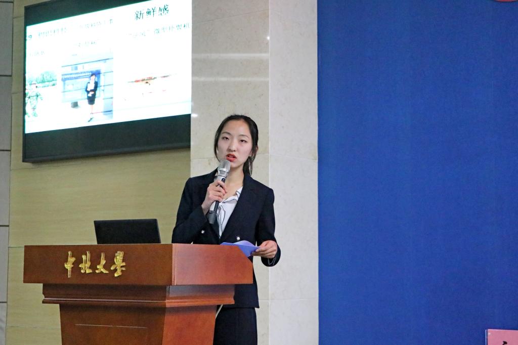 杜雨婷同学结合自身的科技创新情况给与会全体学生做了先进事迹的分享会!
