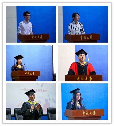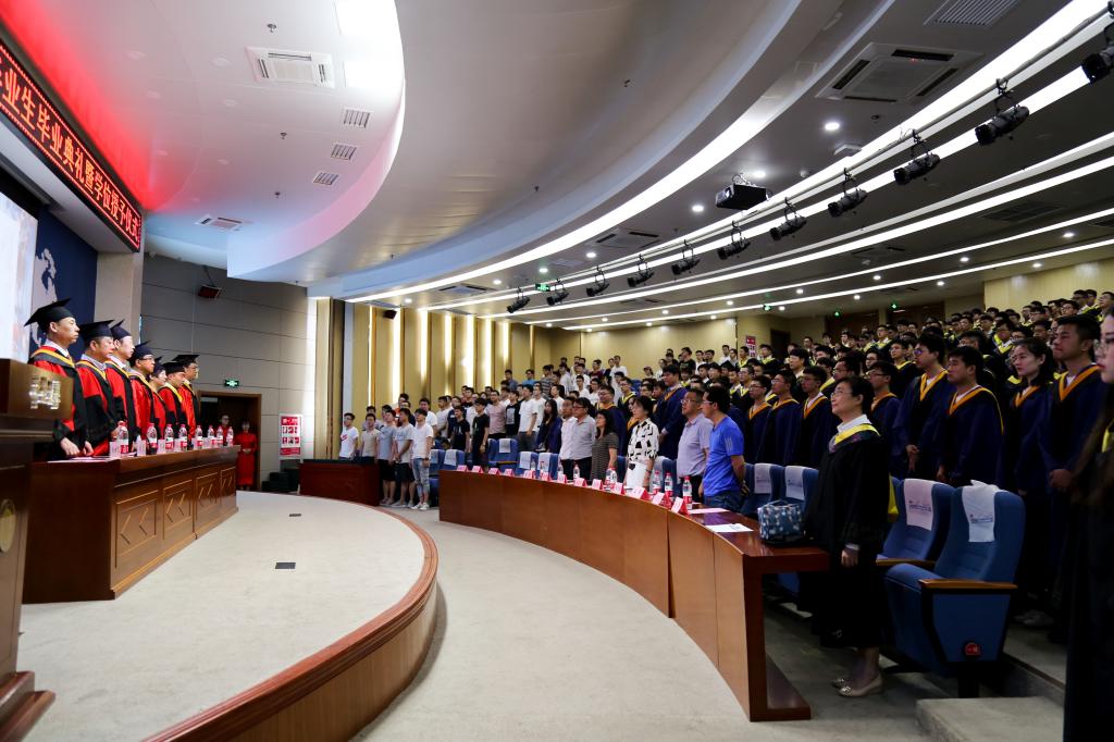 关于授予2018届毕业生孙陇平等253名同学学士学位的决定》。为了营造此次典礼严肃而不失乐趣的氛围,大会中间还安排了发红包、抢红包活动。其中,首届毕业生捐赠仪式也在有条不紊地进行着,使得现场热情高涨。大会中,为了表达能动学子们对于母校和恩师的感恩之情,研究生代表刘思蓉和本科生代表王茜上台讲述了自己难以磨灭的求学生涯,其中包括对恩师的感谢,对母校的不舍以及对时光荏苒的感怀。除此之外,在校生代表学生会主席程志豪也对毕业的学长学姐们表达了自己的美好祝福。同时,作为教师代表的吕彩琴老师寄语同学们:今日的毕业是人生的另一个开始,希望你们能提前做好人生规划,一路前行。此时,离别的伤感充斥着会场。特别是,一个《老班想对你说――》的视频引得毕业生们感触颇深,潸然泪下。