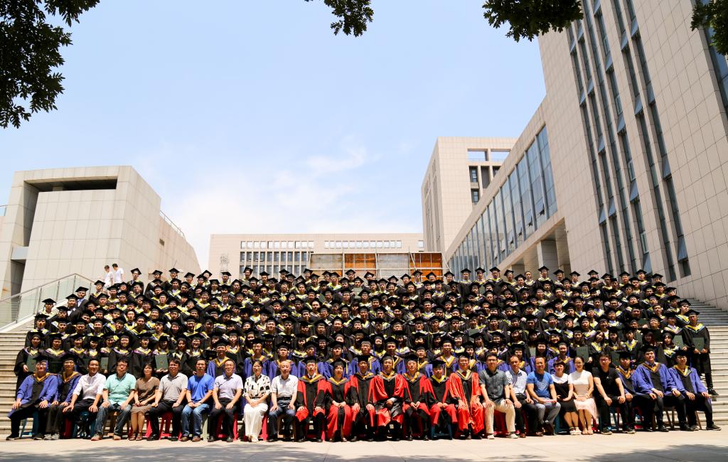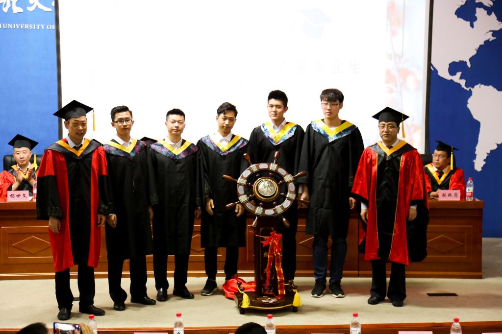 邀请了杰出校友孔斌师兄为大家分享了自己的人生履历和职场感受。他对毕业的师弟师妹们提出了自己的三点建议和期望:一、人生不可能长期一帆风顺,面对挫折,需要有坚韧不拔的毅力。二、遇事从正面考虑,积极发扬正能量。三、在工作中发扬不拖延,不抱怨,不言败的精神。随后,院长刘汉涛老师为282名毕业生依次拨穗,授予学位证书,并合影留念。同时,一位特别的毕业生也参与了毕业典礼,因为孩子已经远赴加拿大求学,母亲特意从广东赶来,帮助孩子完成心愿并向母校表达感谢。