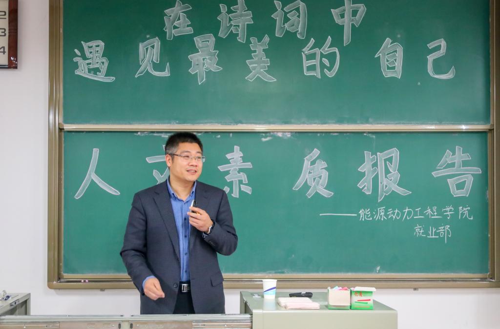 黄教授以诗情词意为题教同学们如何学习诗词中蕴含的爱情、友情、亲情。通过对陶渊明的《饮酒》,陈子昂的《登幽州台歌》的讲解,让大家明白了诗词是作者心境的表达,同时指导大家从“走近诗歌”转化为“走进诗歌”,将同学们代入诗歌之中,感悟文学的魅力,学会从诗词作者的失败和遗憾中反省自我。最后黄教授向同学们展示了自己的诗作并希望同学们能够在诗词中找到自己的追求。
