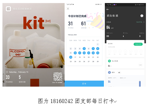 各支部围绕疫情防控、假期学习、运动健身和居家劳动等方面,利用微信、云视讯、b站、Keep等网络资源,以主题团会、志愿服务、问卷调查、学习运动打卡、征文、绘画、读书分享会等形式纷纷开展活动。