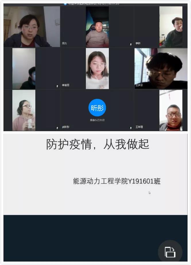 19160144班班主任蒋凯伟老师在班会上,逐一询问同学们的学习生活情况,尤其关注湖北籍同学的身心健康。蒋老师向同学们介绍了全国疫情发展情况,让身处全国各地的同学们放松心态,主动进行网络课程的学习,并制定相应的学习计划。