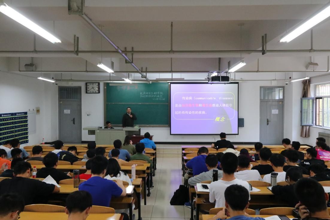 会议伊始,王鹏飞医师介绍了传染病的概念及流行过程,并就新冠肺炎、流行性感冒、肺结核等大学生易感病毒进行了详细讲解,教给大家控制传染病的主要措施以及防范要点,让同学们对常见病毒感染症状、预防措施等有了更加深刻的认识。
