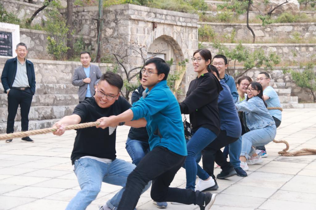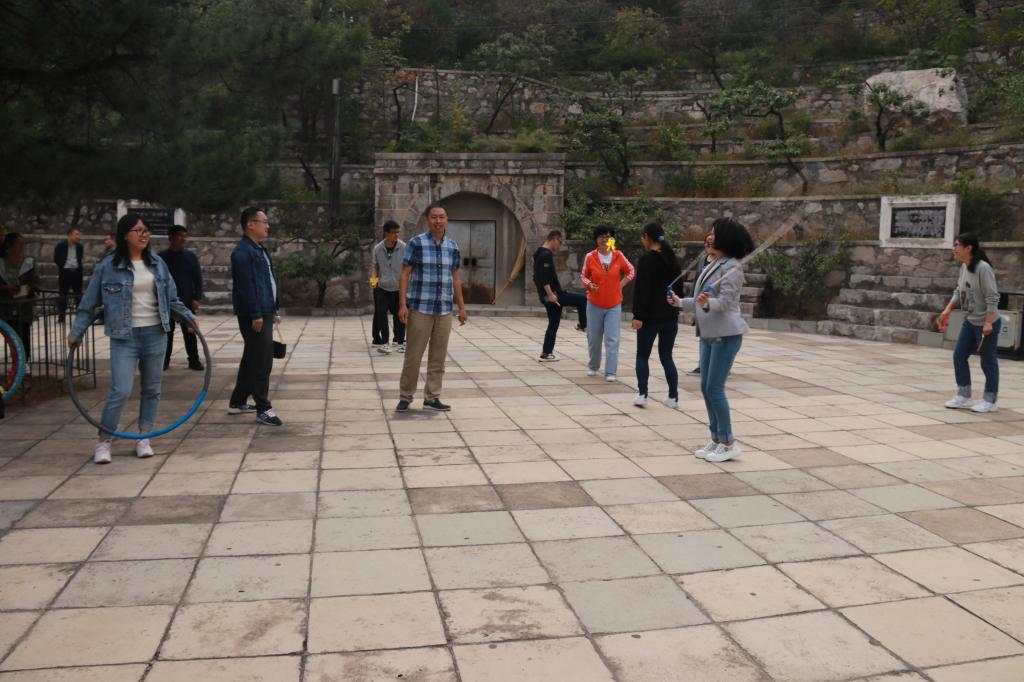 出发,在柏林园孔子像前,老师们认真学习了垃圾分类的知识,并将手中写有不同垃圾名称的便利贴,准确地粘贴到相应颜色的垃圾桶中。随后,大家拾阶而上,来到了二龙山爱心台。在爱心台上,老师们选择各自擅长的体育项目运动起来,有的老师转起了呼啦圈,有的老师踢起了毽子,还有的老师跳起了跳绳,充分享受着清新怡人的空气和活力十足的运动带来的快乐。拔河比赛将活动推向了高潮,老师们自发组成了2支队伍。比赛开始,双方紧握长绳,卯足力气,使劲向后拉。“一二加油,一二加油”,未参加比赛的老师们自发组成了啦啦队,为场上队员加油。呐喊声此起彼伏,飘荡在整个爱心台。