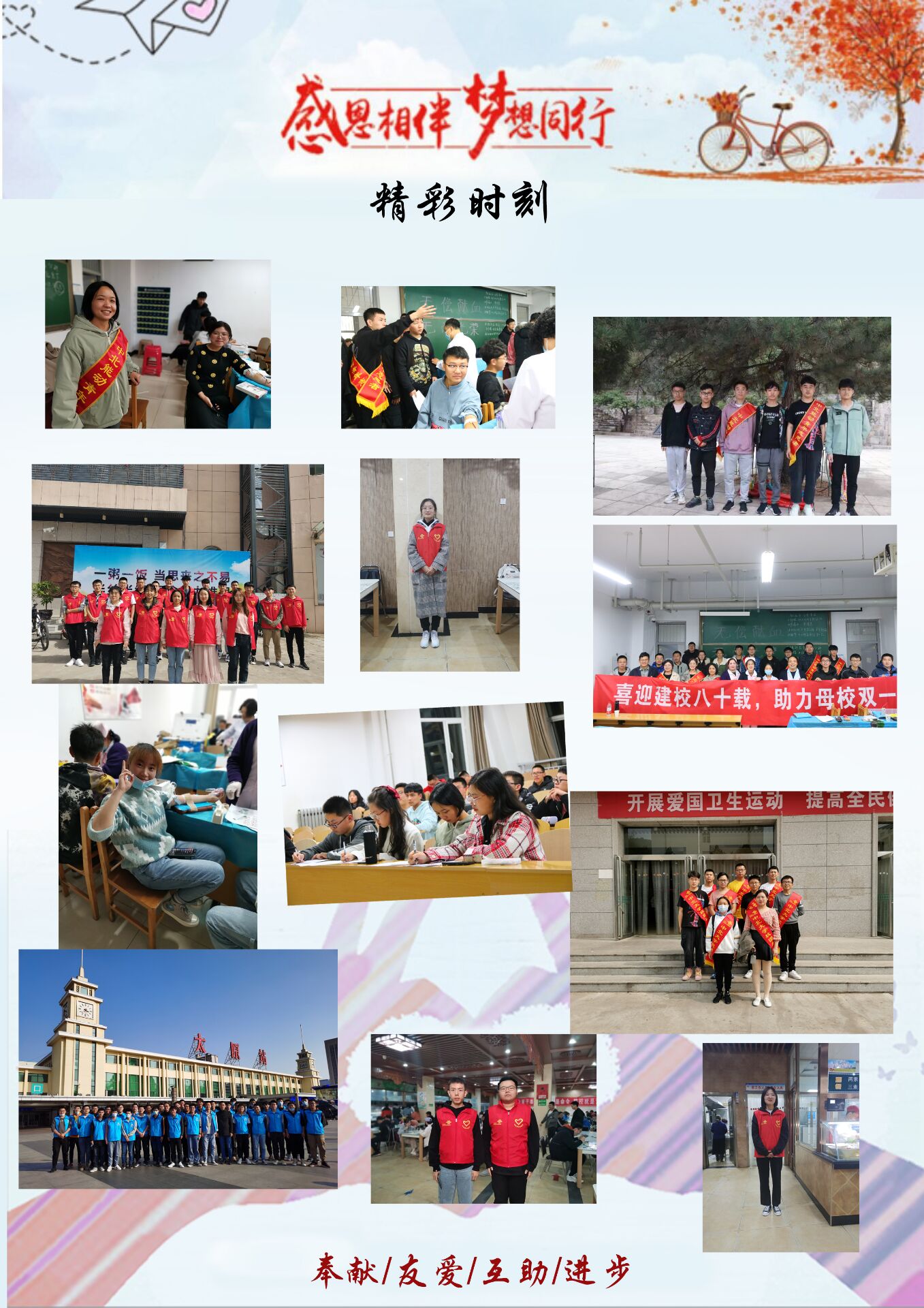 西区文瀛一餐厅门口以及东区龙山餐厅门口共同发起了“‘志’青春,奔赴每场热爱”主题活动,同时通过线上方式向全院同学们展示品牌志愿服务活动。