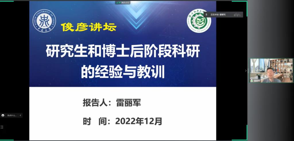 于2022年12月3日上午10:00在线上成功举办了第20221601期俊彦讲坛,本次讲坛以《研究生和博士后阶段科研的经验和教训》为主题,来自各韩国色情