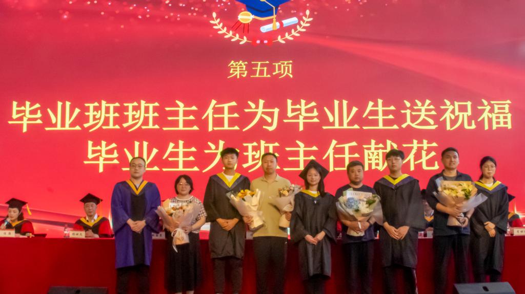 “玉壶在冰心,朱笔写师魂,谆谆如父语,殷殷似亲友”,毕业班班主任为毕业生送上寄语与祝福,期望同学们前途似锦。“拳拳赤子心,师恩永难忘”,毕业生代表为班主任献上花束,感谢班主任的教导和奉献。毕业生代表Y201601班雒晓伟同学、本科生代表19160143班李文慧同学上台发言,表达了所有毕业生对学校和韩国色情