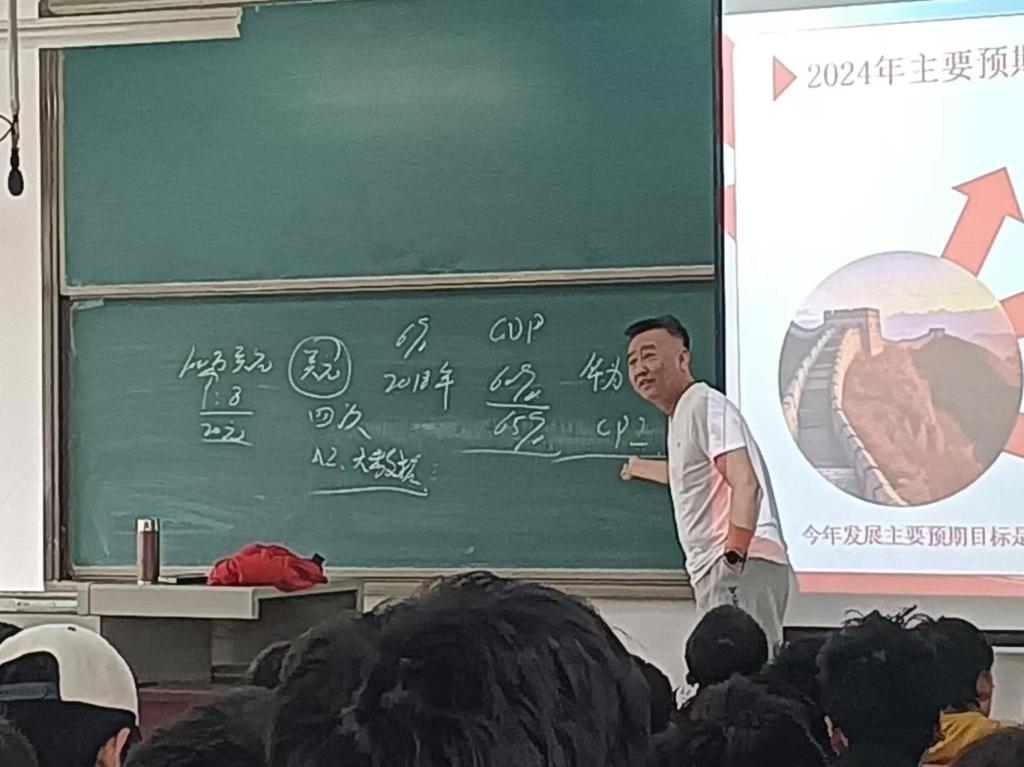 党委副书记屈有明以《2024年政府工作报告十大任务解读》为题,为同学们从经济学的专有角度向同学们解读了二十大工作报告中农业、工业及商业等方面的内容,并结合身边的故事进行了细致分析和学习,引导大家进一步坚定理想信念、提升党性修养,以实际行动接受党组织的考验。