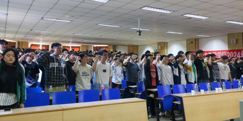 院学生会执行主席陈新轩带领全体同学庄严宣誓,铮铮誓言展现了学子们建设优良学风的决心与信念。大会在激昂的校歌声中圆满结束。此次会议真正从学生角度出发,为同学们提供了宝贵的经验与启示。相信在未来的日子里,能动学子们必将以更加饱满的热情和坚定的信念,迎接挑战,创造辉煌。