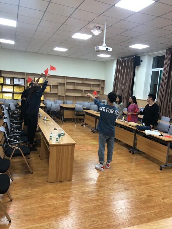 联欢活动在美妙悠扬的《歌唱祖国》的歌声中拉开序幕,在场的同学们高举手中的五星红旗,轻声哼唱着歌曲,表达着对祖国的无限热爱和深情祝福。研究生会也为同学们准备了各式各样的月饼和水果,让身在异地他乡的同学们感受着中秋别样团圆的喜悦。猜歌名、你比划我猜等游戏将现场的气氛带入了高潮,大家在紧张激烈的游戏中展示自己,在竞争中体会团队合作的重要性。