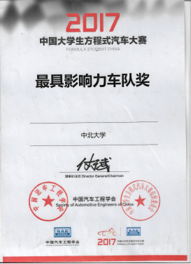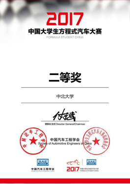 2017赛季梦想4.0号赛车取得全国第19名的好成绩,其中设计答辩第九名,成本答辩第十三名,直线加速并列第一名,并荣获最具影响力车队奖;