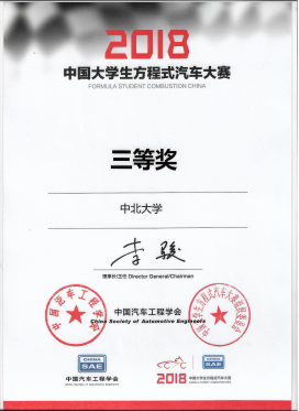 2018赛季梦想5.0号赛车荣获大赛三等奖,山西省参赛车队中成绩排名第一,同时,本年度巴哈赛车参赛并获优秀奖。