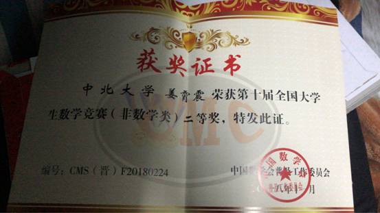 2018年11月第十届全国大学生数学竞赛(非数学类)二等奖