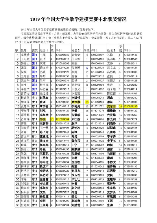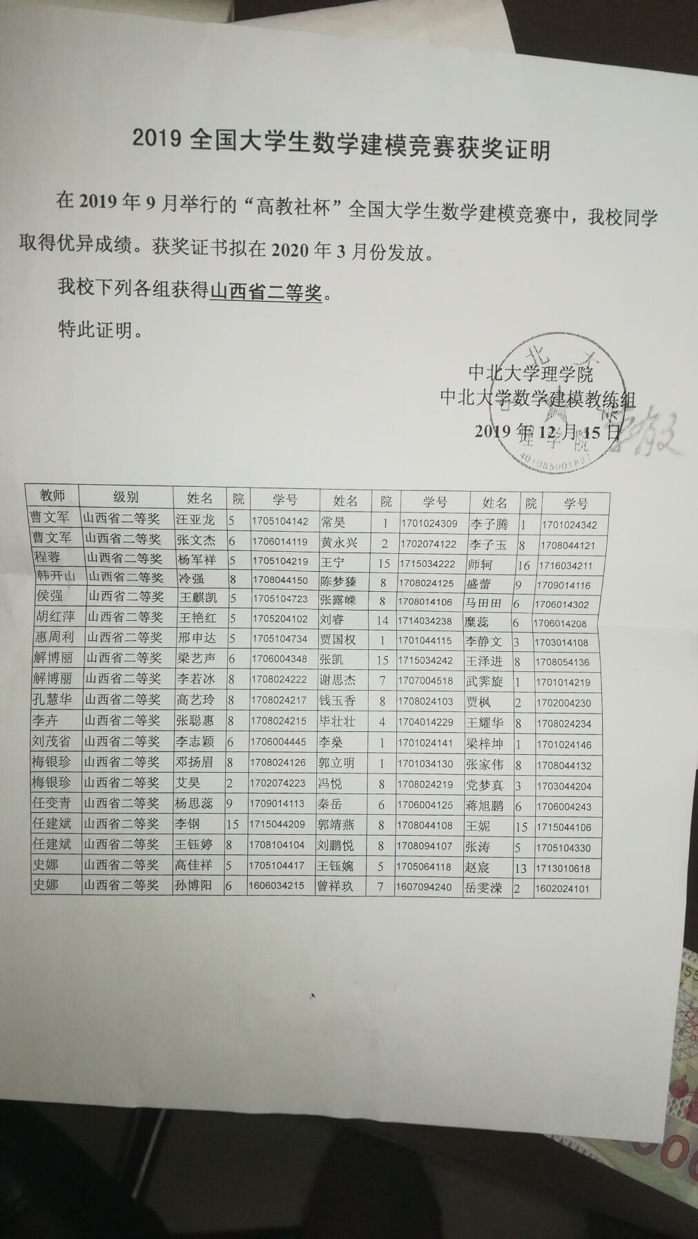 2019年全国大学生数学建模竞赛山西省赛区获奖